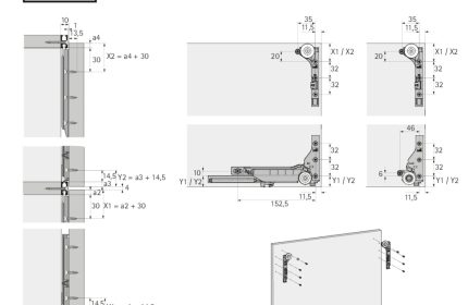 - Khái niệm nền tảng: kích thước thân tủ, ngăn kéo và mặt trước giống hệt nhau cho ray trượt Quadro mở một phần và mở toàn phần kiểu lắp đặt trượt gài