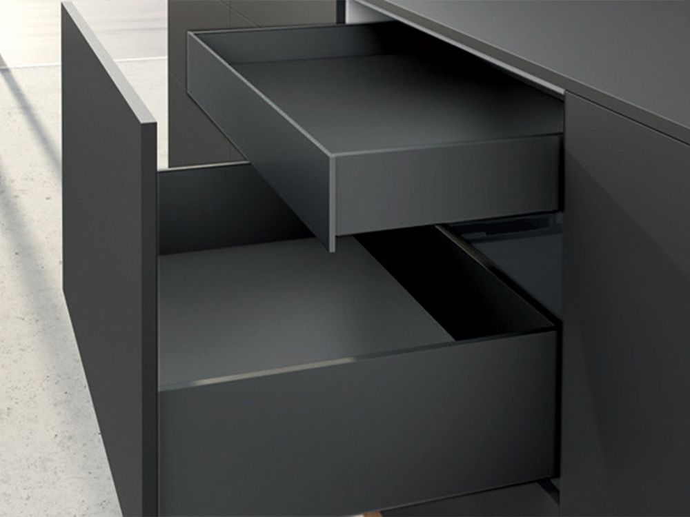- Chiều cao có thể chênh lệch + 6 mm (so với bản thiết kế tiêu chuẩn): điều chỉnh chiều cao của ray hộp khi kết hợp với thiết bị kết nối tại mặt trước ngăn kéo.